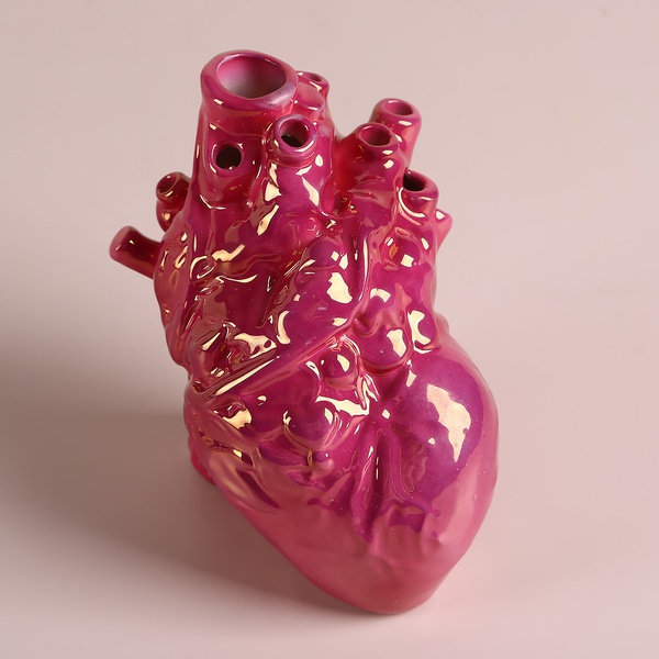 Эстетическая ваза в виде сердца изготовлена керамистами LoraShen. Невероятный анатомический дизайн трогает и завораживает одновременно. Ваза не предназначена для больших и тяжелых букетов. Это сердце для нежных и скромных полевых цветов