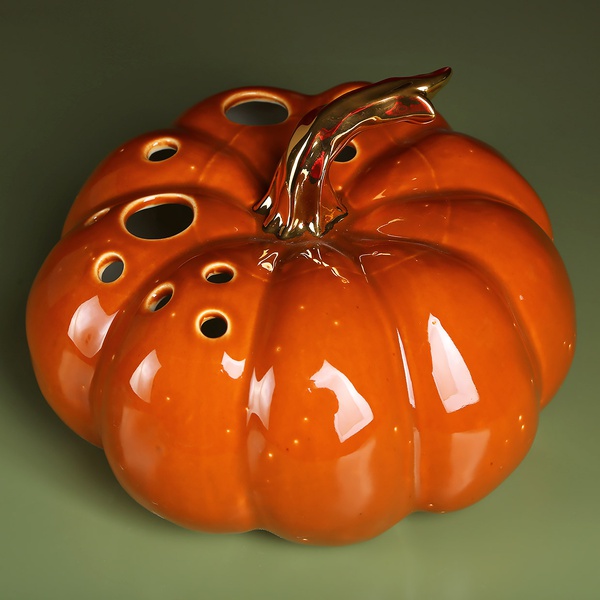 Тематичний керамічний гарбуз з отворами в глазурі власного виробництва LoraShen до свята Дня всіх святих - Хелловін. Ексклюзивна Гарбуз буде прикрасою святкового столу і вашого інтер'єру, стане чудовим подарунком. Можна використовувати як вазу для квіткових композицій.
